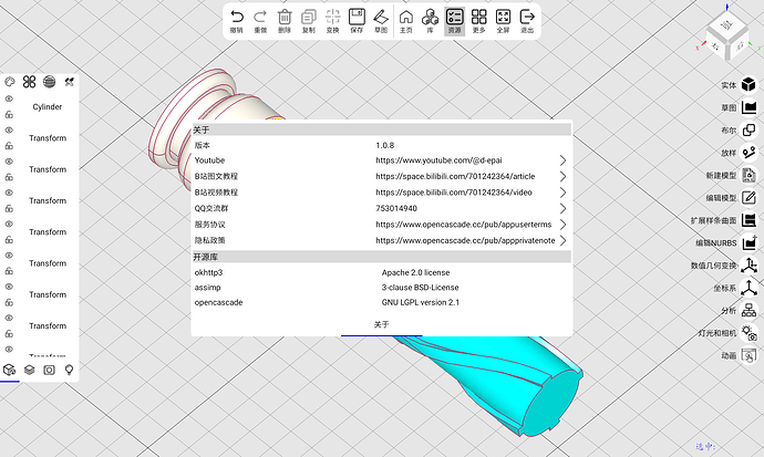 本软件是一个基于OpenCASCADE、android JNI开发的APP。底层用c++实现,UI层用android实现。底层和UI层之间通过JNI接口和json数据格式通信。